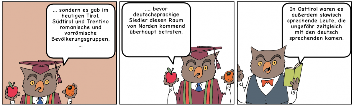 Im Modul Geschichte erfährst du einiges über die heutige Euregio Tirol-Südtirol-Trentino. Die Geschichte einer Region ist auch die Geschichte der Sprache(n) einer Region, denn wo Menschen aufeinandertreffen …